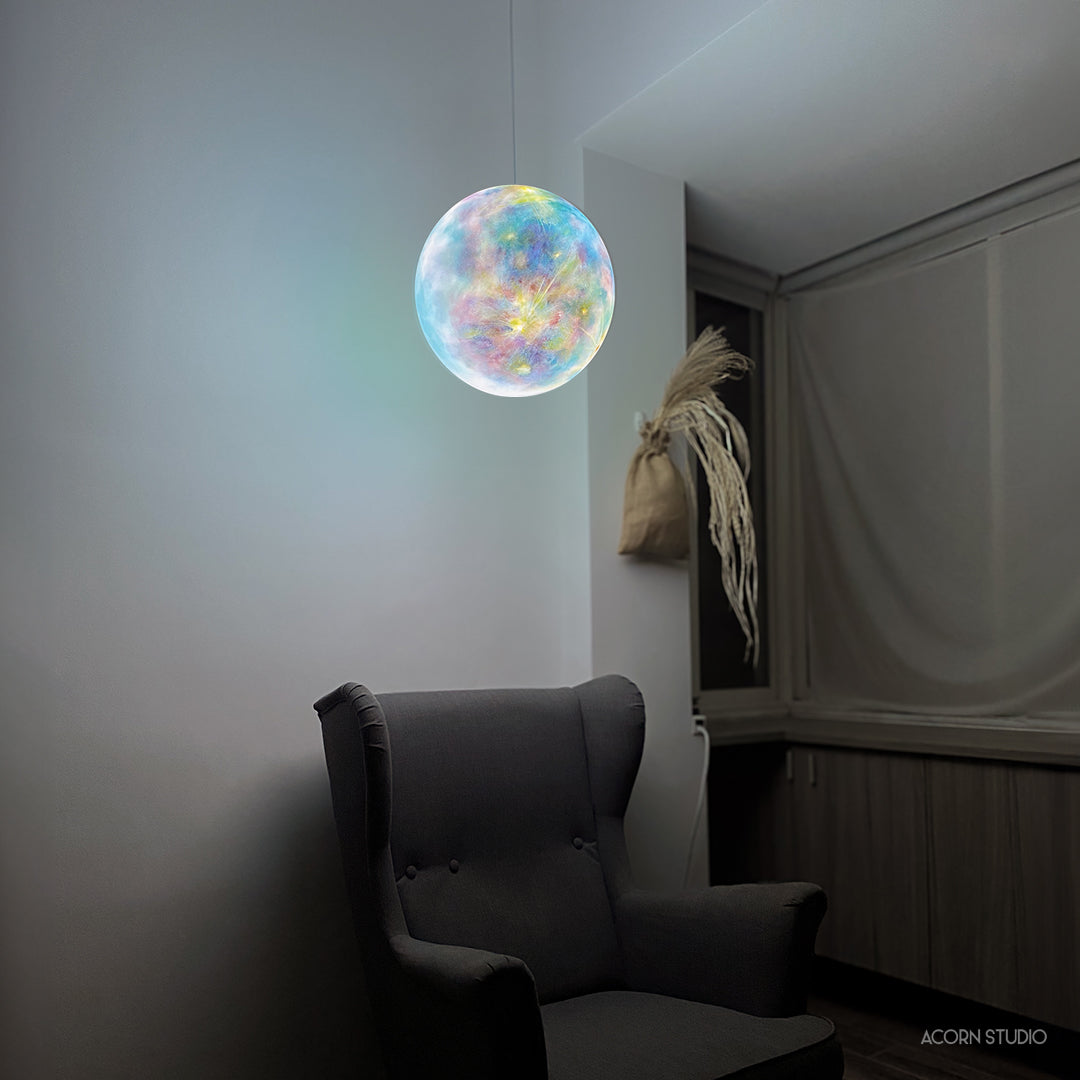 The piece is handcrafted by the artist, meticulously drawn, sculpted, and polished to reflect the impression and appearance of Mercury. Its surreal visual style creates a grand cosmic and ethereal atmosphere in any space.